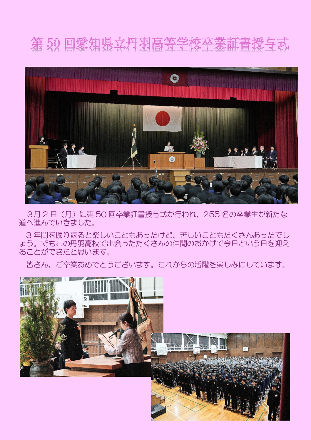 愛知県立丹羽高等学校第50回卒業証書授与式